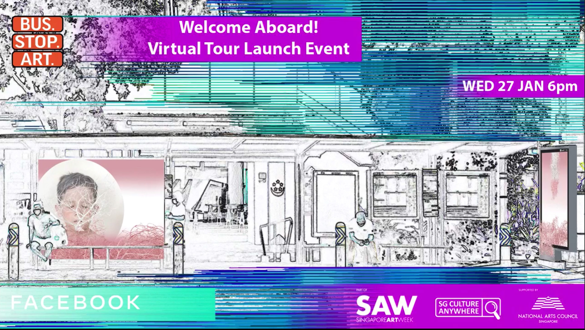 Get on board for the launch of Bus.Stop.Art’s Virtual Tour video made in collaboration with Facebook Open Arts. The Bus.Stop.Art. Virtual Tour allows a global audience to see the artworks in bus shelters along the 175 bus route, and experience the journey travelling across Singapore from Geylang Bahru to Gillman Barracks. Join the curators and artists for a conversation to hear more about their projects and taking art outside the white cube and into public spaces.